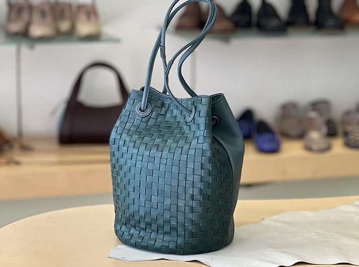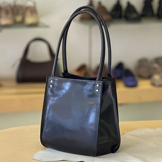 なんとも秋らしいカラーのバッグたち。上質な革バッグは1つ持っているだけでランクアップした気分に。バッグ(左から):42,900円・44,000円・42,900円(すべてB.stuff)/靴:25,300円(SAYA)